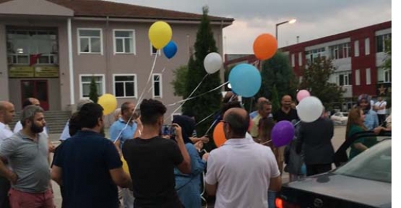 Hendek Adliyesi önünde günlerdir bekleyen Üst Düzey Yönetici F.K.'nın yakınları Adliye çıkışında F.K.'yi balonlarla karşıladı.