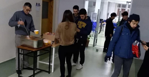 SAÜ Hendek Eğitim Fakültesi Final sınavları süresince Kütüphanede ders çalışan öğrencilere çorba ikramında bulunuyor.