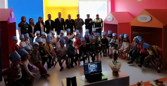Hendek Özel Pırıltı Anaokulu öğretmenlerinden Pınar Kasım ve Meltem Sarı öğrencileriyle çektikleri sürpriz videoları polislere izlettiler.