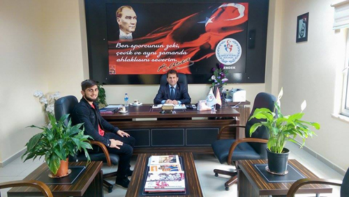 Hendekli Şampiyon Güreşçimiz Ensar KARABACAK ilçemiz 1500 kişilik yeni spor salonu ve ilçe müdürlüğümüze ziyarette bulundu.
