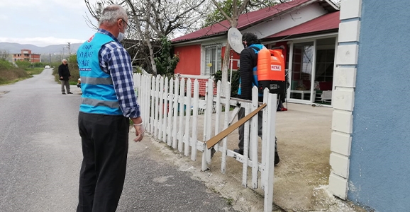Küt ve Davulcu birçok sokak ve meskeni dezenfekte ederken, evden çıkamayan büyükleri ve ihtiyaç sahiplerini ziyaret ederek ihtiyaçlarını sordular.