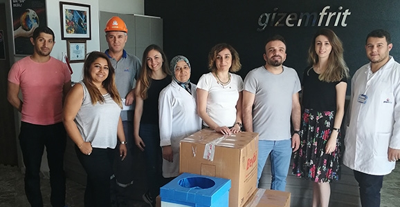 Gizemfrit çalışanları, altı ay içinde toplam 10 kilo kapak toplayarak engelli bireylere akülü araç ve tekerlekli sandalye alınmasına destek oldu.