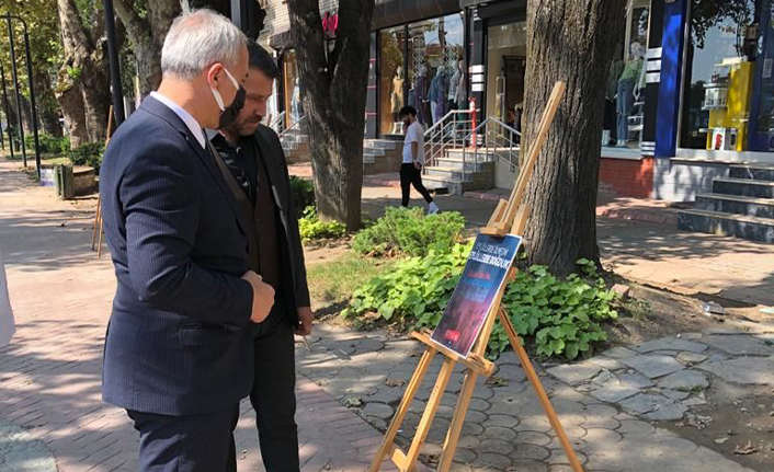 Hendek Muammer Sencer Caddesi üzerinde kurulan resim sergisine Hendek Belediye Başkanı Turgut Babaoğlu, MHP Hendek İlçe Başkanı Burhan Namlı, Ülkü Ocakları Hendek İlçe Başkanı Sıtkı Yaz ve Vatandaşlar katıldı.