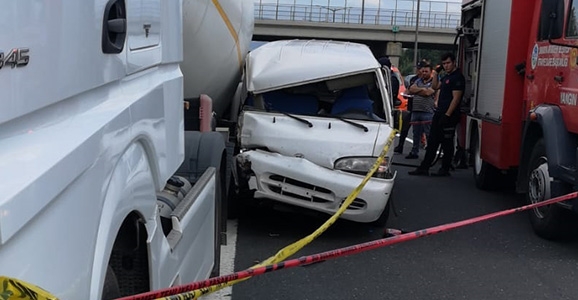 Tem Otoyolunda meydana gelen trafik kazasında çarpmanın etkisiyle kapısı kopan minibüsten düşen 1 kişi Tır ve minibüs arasında ezilerek feci şekilde hayatını kaybetti.