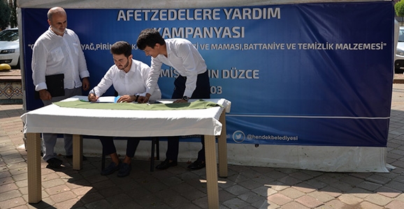 Düzce’de meydana gelen ve 2 kişinin hayatını kaybettiği, 5 kişinin kayıp olduğu, çok sayıda evin kullanılamaz hale geldiği sel felaketinde zarar gören vatandaşlar için Hendek Belediyesi tarafından yardım kampanyası başlatıldı. Bölgeye su gönderen Hendek Belediyesi bu kez de giysi, gıda (Un, yağ,pirinç,makarna), bebek bezi ve maması, battaniye ve temizlik malzemesi için seferberlik başlatarak vatandaşlara çağrıda bulundu.