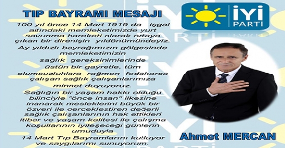 Sağlığın bir yaşam hakkı olduğu bilinci ile “Önce İnsan” ilkesine inanarak Mesleklerini büyük bir özveri ile gerçekleştiren değerli Sağlık çalışanlarının hak ettikleri itibar ve yaşam kalitesi ile çalışma koşullarının iyileşeceği günlerin umuduyla 14 Mart Tıp Bayramlarını kutluyor ve saygılarımı sunuyorum.