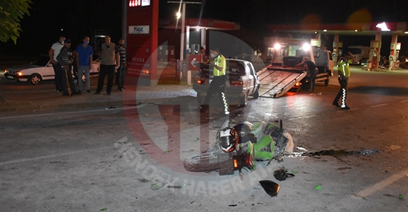 Edinilen bilgilere göre, Hendek Yenimahalle Abdurrahman Gürses Caddesi üzerinde bir petrol istasyonu önünde motosiklet ile otomobil çarpıştı.