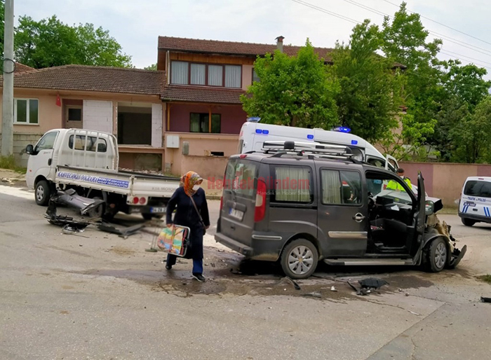Çarpışmanın şiddeti ile savrulan F.K. idaresindeki kamyonet kaldırıma çarparak durabilirken, sürücüsü hafif yaralandı.
