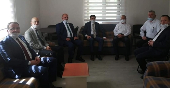 Konuşmalar ve kısa sohbetin ardından Üstün Muhtar İskefiyeli’ye maske takdiminde bulunarak karşılıklı teşekkürlerin ardından vedalaştılar.