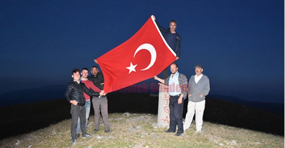 Hendek Dikmen Mahallesi Muhtarı Menderes Ayvaz beraberinde Mahalle sakinleri ile birlikte Sakarya’nın en yüksek noktası Dikmen Tepe (1725) noktasında Şehitlik ziyaretinin ardından göndere Türk Bayrağı çekerek 15Temmuz Demokrasi Nöbetine destek verdi.