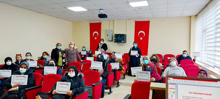 Temel İlkyardım konusunda bilgiler verilerek tıbbi malzeme olmadan doğru müdahale etmenin önemi anlatıldı. Hendek Halk Eğitim Merkezi kursiyerleri kendi yaşamlarında karşılaştıkları riskli olayları ve sağlık sorunlarını paylaştılar.