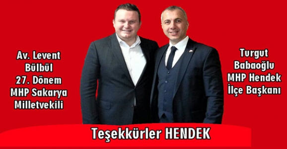 MHP Sakarya Milletvekili M. Levent Bülbül ve MHP Hendek İlçe Başkanı Turgut Babaoğlu’ndan teşekkür mesajı.