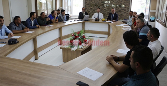 Hendek İlçe Milli Eğitim Müdürlüğü toplantı salonunda takım temsilcileri ile bir araya gelen Hendek Kaymakamı Orhan Burhan, Hendek İlçe Milli Eğitim Müdürü Mustafa Çuhadar ve Hendek Gençlik Hizmetleri ve Spor İlçe Müdürü Süleyman Akıcı turnuva ile ilgili detayları takım temsilcilerine sundu.