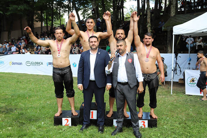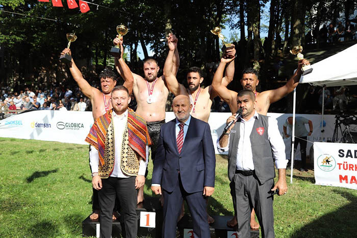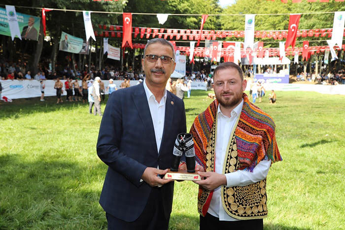 Selman Dede Başpehlivanlık güreş müsabakalarında dereceye girenlere protokol üyeleri tarafından ödülleri takdim edildi.