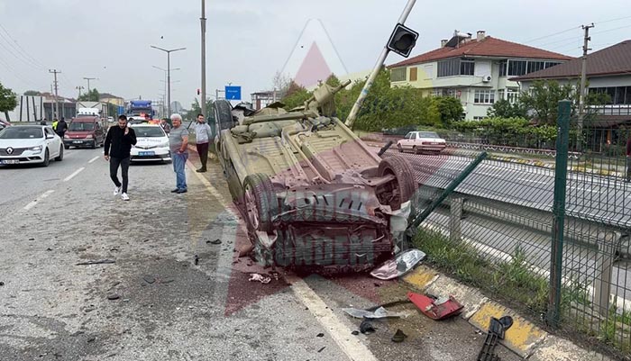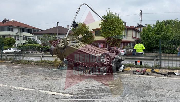 Hendek D-100 Karayolu üzerinde seyir halinde bulunan otomobil, tur ile çarpışmamak için direksiyonu kurması sonucu takla atarak durabildi.