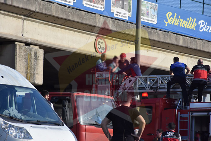 Hendek’te köprüye çıkarak intihar girişiminde bulunan genç kız İtfaiye ekiplerince kurtarıldı.