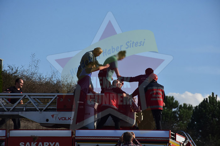 Güvenli şekilde ekiplerce bulunduğu noktadan İtfaiye merdiveni ile indirilen Ö.S. 112 Acil Servis ekiplerince olay yerinde yapılan kontrollerinin ardındsm Hendek Devlet Hastanesine kaldırıldı.