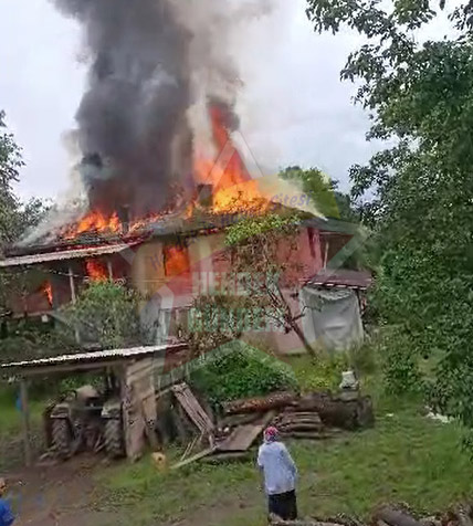 İ.D 'e ait evin çatı kısmında henüz bilinmeyen bir sebepten dolayı yangın çıktı.