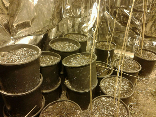 Düzenlenen operasyon sonucu A.U.’ya ait olduğu belirlenen yapı içerisinde yapılan aramalarda, 2kg iplere asılı kubar halde kurutulmuş dişi hint keneviri ile birlikte üretimde kullanılan saksılar, gübreler, vantilatörler ve ısıtıcılar ele geçirildi.