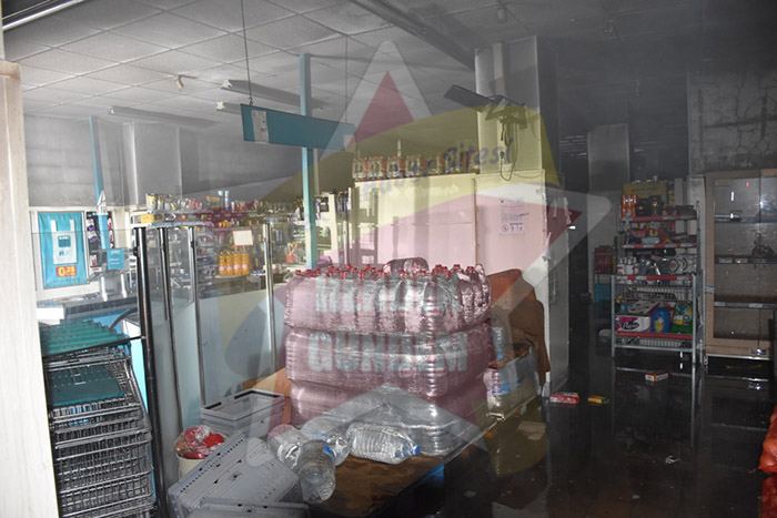 Depo kısmındaki tuvalet kağıdı, kağıt havlu, karton ve naylon poşetlerin bulunduğu alanda içten içe yanan malzemeleri söndürme çalışmaları yapan itfaiye ekipleri yoğun çalışmaları sonunda yangını kontrol altına aldı.