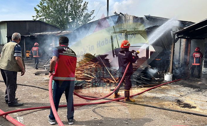 Yangın sonrası kereste atölyesinde büyük çapta maddi hasar meydana gelirken, olayla ilgili inceleme başlatıldı.