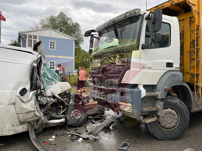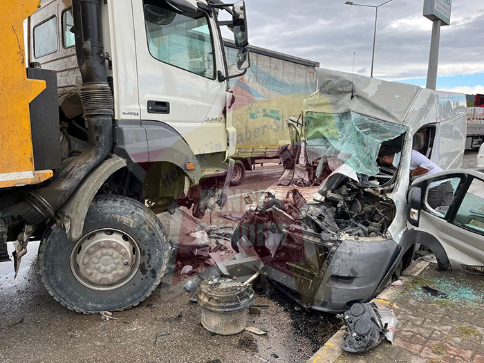 Edinilen bilgilere göre. Hendek 2.OSB ışıklı kavşağında meydana gelen kazada Adapazarı istikametinden 2.OSB’ye giriş yapmak isteyen M.K. idaresindeki 54 TV… plakalı panelvan minibüs yağışlı hava nedeniyle sürücüsünün direksiyon hakimiyetini kaybetmesi sonucu 2.OSB girişinde orta refüjde çarpmasının ardından karşı yöne geçerek orada bulunan kamyona çarptı.
