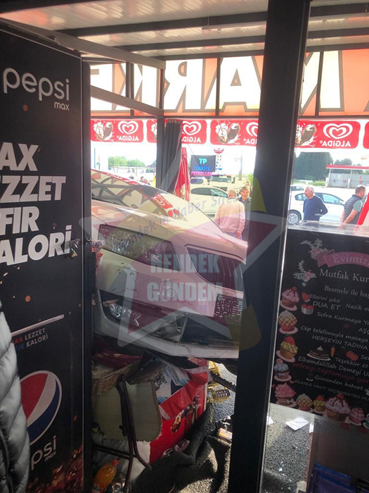 Kaza sonrası araç sürücüsü İ.Y. ve beraberinde bulunan B.Ş. kazadan yara almadan kurtulurken, kaza esnasında markette de kimsenin yaralanmaması olası bir faciayı önlemiş oldu.