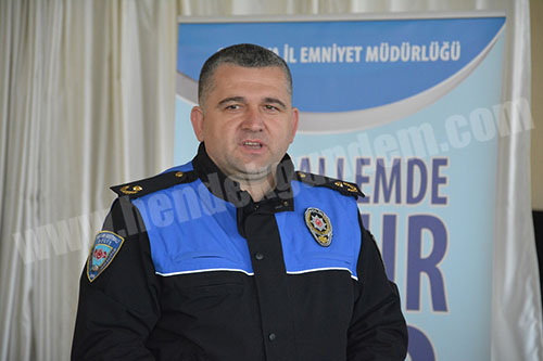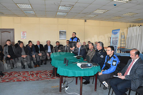 İl Emniyet Müdürlüğü Toplum Destekli Polislik Şube Müdürü Halil İbrahim Keskin slayt sunum öncesi Genel güvenlik hizmetlerinde ve suçla mücadelede toplumun katılımı ve sorunların çözümünde vatandaşımızla ortak hareket edilmesi gerektiğini belirterek “Muhtarlarımızın da bu katılımcı yönetimde etkin rol almaları bizim için önemlidir diyerek bilgiler verdi.