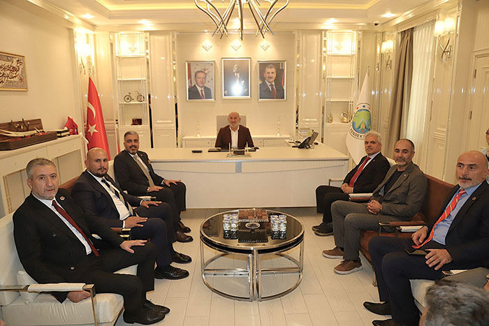 Samimi ve sıcak bir atmosferde gerçekleşen ziyarette, yerel yönetimlerle ilgili projeler ve gündeme dair çeşitli meseleler ele alındı.