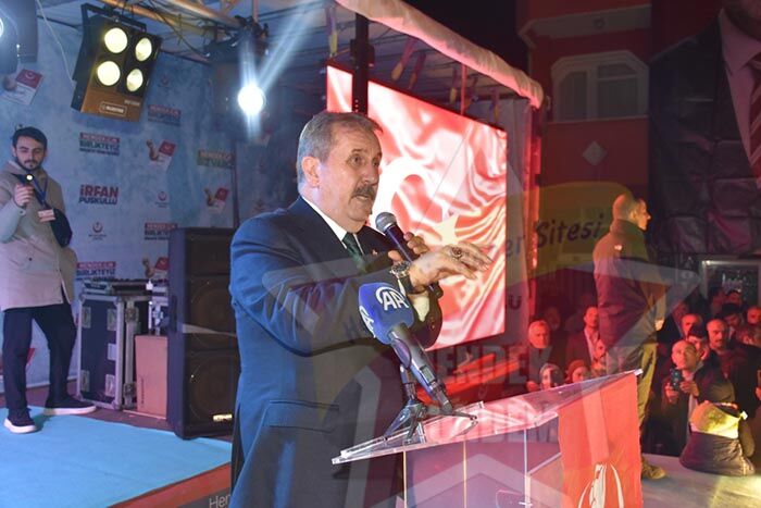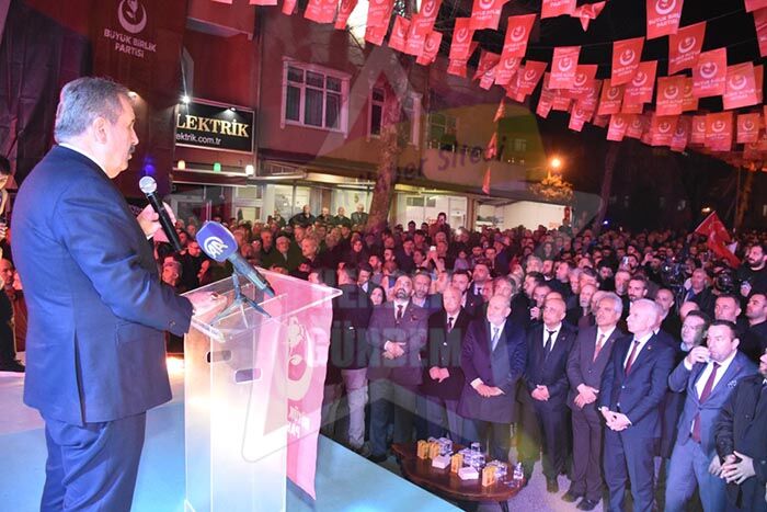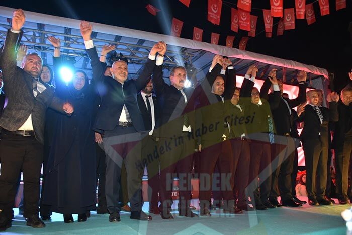 Büyük Birlik Partisi (BBP) genel başkanı Mustafa Destici yaptığı konuşmada, sölerine İsrail ve iş birlikcilerini kınamay ile başlayan destici bir kardeşiniz olarak gazzeye giden tek genel başkanım ordaki yetkililerle görüştüm 2023 seçimlerinde cumhur itifakı olarak seçimlere girdik sizlerinde Hendek’in destakleri ile güçlü desteğiyle Sakarya’nın güçlü desteğiyle Türk milletinin Türk seçmenin güçlü desteğiyle Hem Cumhur başkanlığı seçimlerini kazanarak Cumhur başkanımız sayın Recep Tayyip Erdoğan’nı bir kez daha cunhur başkanı seçtik aynı cumhur ittifakı olarak meclis çoğunluğunu koruduk.