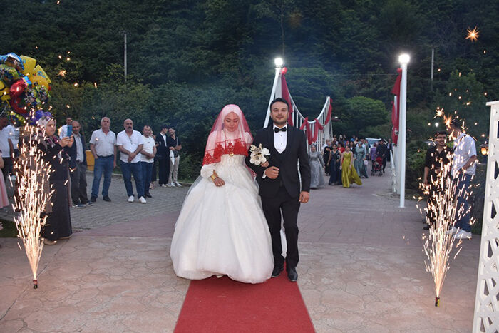 Mutlulukları gözlerinden okunan genç çiftler dostları ve arkadaşları ile bu mutlu günlerinde doyasıya eğlenirken, misafirler çalınan yöresel ezgiler eşliğinde genç çiftlerin mutluluklarına ortak oldular.