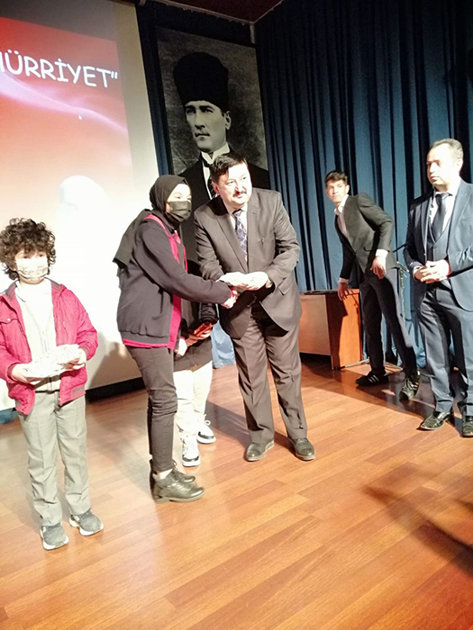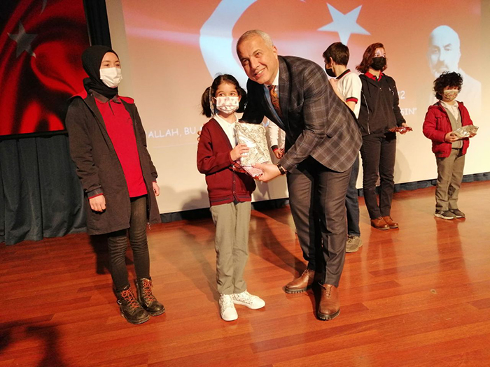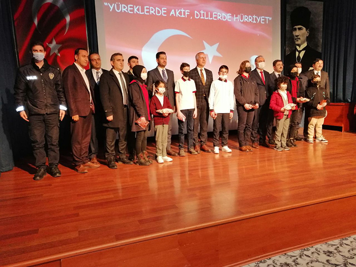 İlçe genelinde öğrencileri arasında düzenlenen İstiklal Marşını Güzel Okuma Yarışmasında dereceye giren öğrencilere ödülleri verildi.