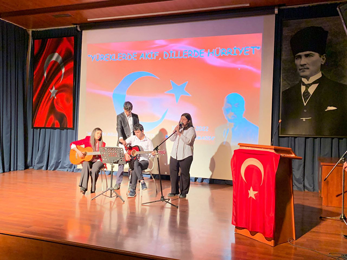 Saygı duruşu ve İstiklal Marşı´nın okunmasıyla başlayan program, video slayt gösterisi, günün anlam ve önemi, şiirlerin okunması, istiklal Marşı drama gösterisi ve oratoryo ile devam etti.