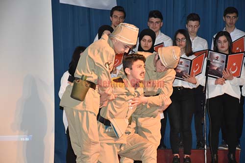 18 Mart Şehitleri Anma ve Çanakkale Zaferi’nin 104’üncü yıl dönümü dolayısıyla hazırlanan program da Çanakkale zaferinin nasıl kazanıldığına dair slayt gösterisi ve öğrenciler tarafından çeşitli tiyatro gösterileri yapılarak anlatıldı.