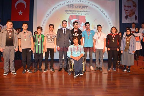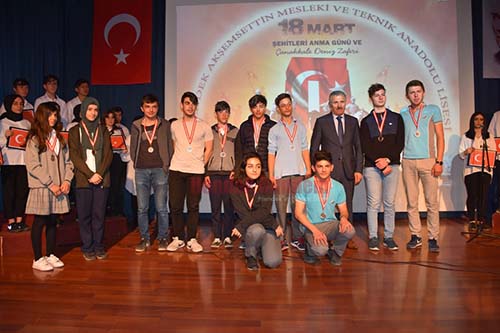 Çanakkale; Yüreğin ve Bileğin Zaferi’’ Projesi kapsamında dereceye giren öğrencilere madalyaları Hendek Cumhuriyet Başsavcısı Sebahattin Erkaya, Hendek Belediyesi Başkan vekili M.Nedim Alkan ve Hendek Kaymakamı Orhan Burhan Tarafından verildi.