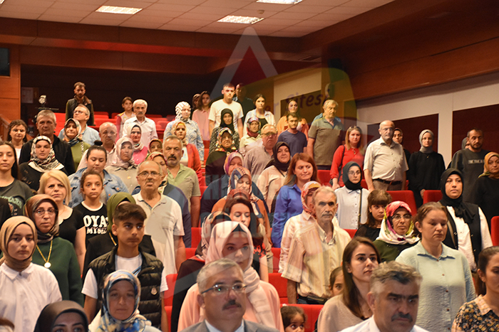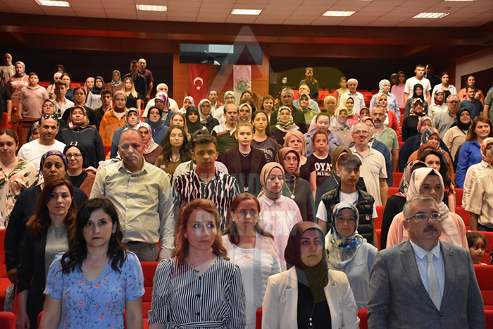 Şiir dinletisinin ardından gerçekleştirilen müzik dinletisi sonrası Bayrak ve Flama değişimi gerçekleştirilirken, okul birincisi Dicle İçten’e plaket taksim edilerek Okul kütüğüne künye çakılmasının ardından Okul Birincisi Dicle İçten konuşma gerçekleştirdi.