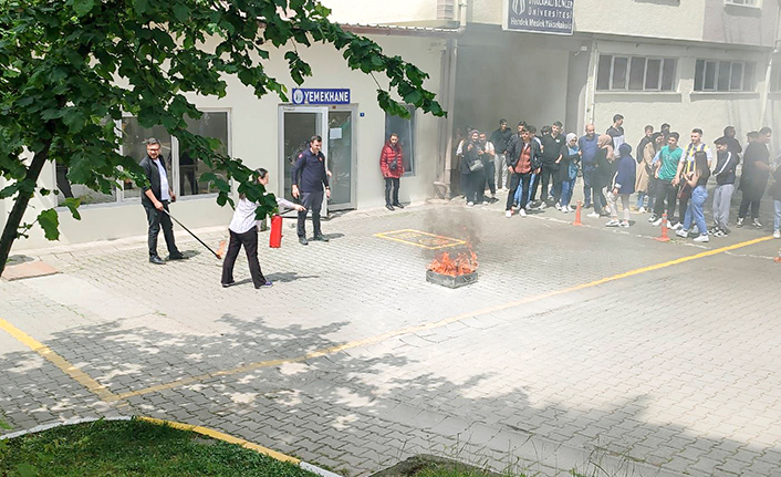 Sakarya Uygulamalı Bilimler Üniversitesi (SUBÜ) Hendek Meslek Yükseokulu’nda Sakarya Büyükşehir Belediyesi İtfaiye Daire Başkanlığı’nca yangın söndürme, kurtarma ve tahliye tatbikatı eğitimi verildi.
