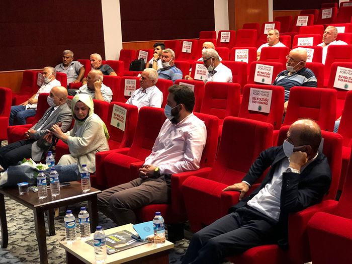 Ardından Çevre ve Uyum konusunda Ziraat Mühendisleri Esra K.Gökcü, M.Tuğrul Taşan ile M.Gizem Baydar tarafından bilgiler paylaşıldı. Hastalık ve zararlılara karşı uyguladığımız kimyasallar etkinliğini kaybetmekte olduğu, uyguladığımız gübrelere rağmen istenilen verimin elde edilemediği anlatıldı. Küresel ısınmanın etkileri ve iklim değişikliğinden fındık tarımının nasıl etkilendiği kapsamlı bir şekilde anlatıldı. Ayrıca atık yönetimi ve uygulanması gereken yöntemler anlatılırken, “Bu Mevsimsel değişiklikler çok hassas iklim koşullarına bağlı fındık bitkisini derinden etkiliyor. Budama atıklarının bahçelerde gelişi güzel ve bilinçsizce yakılması sonucu havada ki karbon miktarı artmakta bu da sera etkisi yaratarak küresel ısınmayı tetiklemektedir.