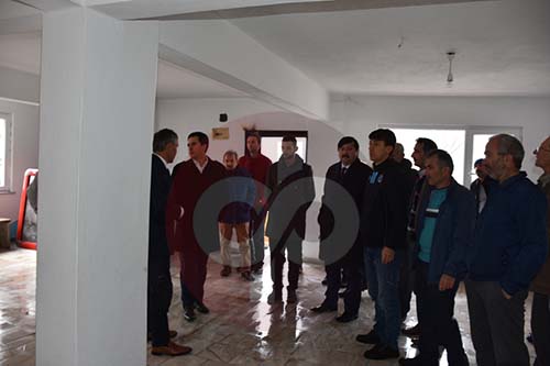 Mahallede Mahalle Muhtarı Menderes Ayvaz’ın Gösterdiği çeşitli Binalarda incelemelerde bulunan Arduç ve Doğan her binanın okul olmaya uygun olmadığını belirtti.