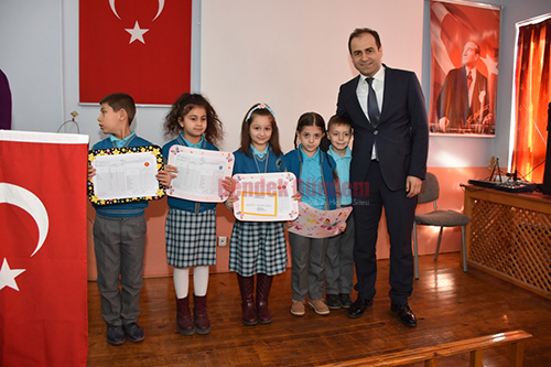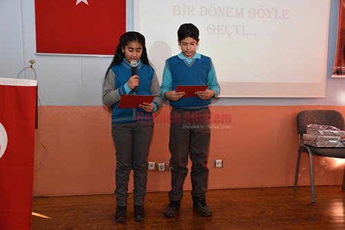 Saygı Duruşu ve İstiklal Marşının okunması ile başlayan tören Okul Müdürü Mürsel Akyol’un konuşması ile devam etti. Mustafa Asım İlkokulu hakkında kısa bilgiler veren Akyol, bir dönemin daha sonuna geldiklerini ifade ederek, Karnelerini alan tüm Öğrencilere başarılar diledi.