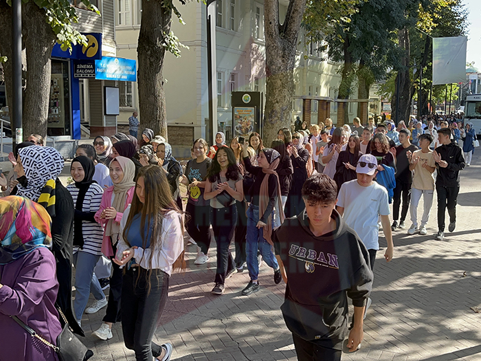 Her sabah olduğu gibi İstiklal Marşı okunmasının ardından Okul önünden başlayarak Muammer Sencer Caddesi üzerinden alkışlar eşliğinde yürüyen Öğrenci ve Veliler tepkilerini alkışlarla dile getirdiler.