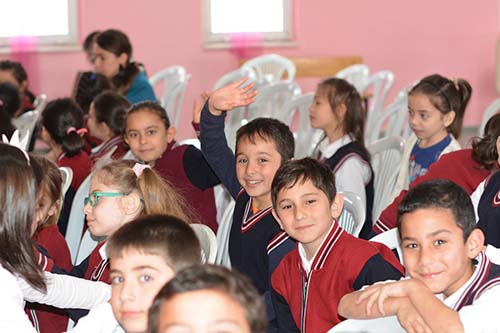 Hacıvat karagöz oyununa öğrenciler büyük ilgi gösterdiler.