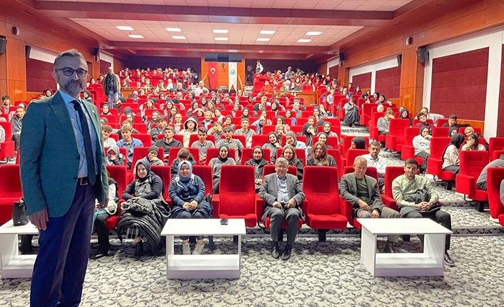 Öğrencilerin dikkatle dinlediği konferansta Araştırmacı yazar Yılmaz Çiğdem, geleceğin meslekleri, kişisel gelişim,kendini keşfetme, gençlik çağını en verimli bir biçimde değerlendirme konularına değindi.