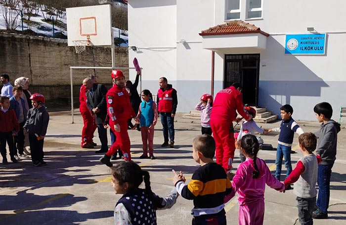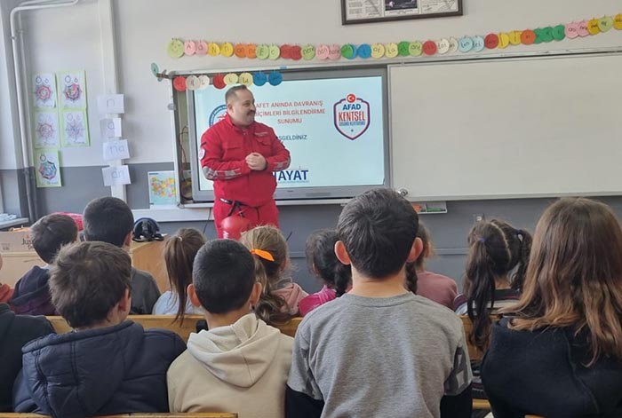 Kurtuluş İlkokulu ve Ortaokulunda düzenlenen program kapsamında, Hayat Arama Kurtarma Derneği tarafından öğrencilere, öğretmenlere ve okul personeline deprem öncesinde, sırasında ve sonrasında alınması gereken tedbirler hakkında kapsamlı bilgilendirmeler uygulamalı olarak gösterildi.