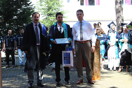 Tören bölümlerinde onur ve yüksek onur belgesi alan ve mezuniyet sevincini yaşamaya hak kazanan tüm öğrencilerin tören diplomaları ile bölüm birincilerinin belge ve hediye takdimiyle devam etti. Elektrik ve Enerji Bölümü Birincisi Mehmet Can Altuner, Elektronik Bölümü Birincisi Alper Kendirli, Makine ve Metal Teknolojileri Bölümü Makine Programı Birincisi Yusuf Yiğitoğlu, Makine ve Metal Teknolojileri Bölümü Makine Resim KonstrüksiyonProgramı Birincisi Mücahit Coşar, BilgisayarTeknolojileri Bölümü Birincisi Hüseyin Erhan KazancI, İnşaat Teknolojisi Bölümü Birincisi Osman TÜKEN, Yönetim ve Organizasyon Bölümü Birincisi Selim Alkaş ve Muhasebe ve Vergi Bölümü birincisi Kübra Çiftçİ’ye belge ve hediyeleri Bölüm Başkanları tarafından takdim edildi. Şüphesiz törenin en coşkulu anlarından biri okul düzeyinde dereceye giren öğrencilerin başarılarının taçlandırıldığı ödül töreniydi. 2017-2018 eğitim ve öğretim yılını okul üçüncüsü olarak tamamlayan Hüseyin Erhan Kazancı ödülü Hendek Eğitim Fakültesi Dekanı Prof. Dr. Firdevs Karahan ve Geyve MYO Müdürü Dr. Öğr. Üyesi Nermin AKYEL tarafından, okul ikincisi Kübra Çiftçi’ye ödülü Sakarya Uygulamalı Bilimler Üniversitesi Rektör Yardımcısı Prof. Dr. Sinan Serdar Özkan ve İlçe Emniyet Müdürü Şevket İlhan tarafından, Okul birincisi Yusuf Yiğitoğlu’ naise ödülü Hendek Kaymakamı Orhan BURHAN ve Meslek Yüksekokulu Müdürü Dr. Öğr. Üyesi Nihat Kurt tarafından verildi.