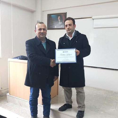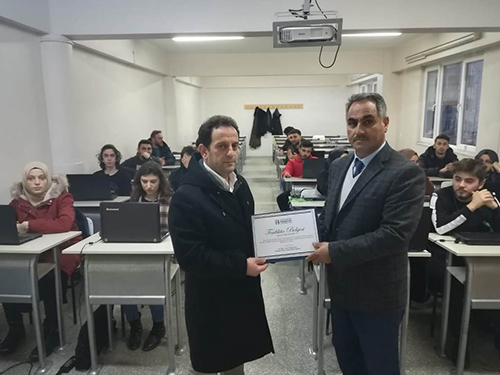 KFS İnsan Kaynakları Müdürü Kamil Çizer iş dünyasında işletmelerin farklı departmanlarında farklı pozisyonlarda işe alınacak personelde hangi bilgi, beceri ve kişisel özelliklerin arandığını, mülakatlarda dikkat edilen konuları 30 yılı aşkın meslek hayatından örnek olaylarla anlatırken öğrencilerimize iş hayatında başarılı olabilmeleri için iletişim becerilerini geliştirmeleri doğru belirlenmiş kariyer hedeflerine ulaşmaları için kendilerini sürekli geliştirmeleri gerektiğini tavsiye etti.