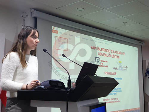 Konferansa katılanlara İSG uzmanı Fatma Füsun Çakır 6331 sayılı İş Sağlığı ve Güvenliği kanunu ile ilgili genel bilgiler hem de Kanunun Yapı İşleri ile ilgili olan uygulamaları somut örneklerle sundu.