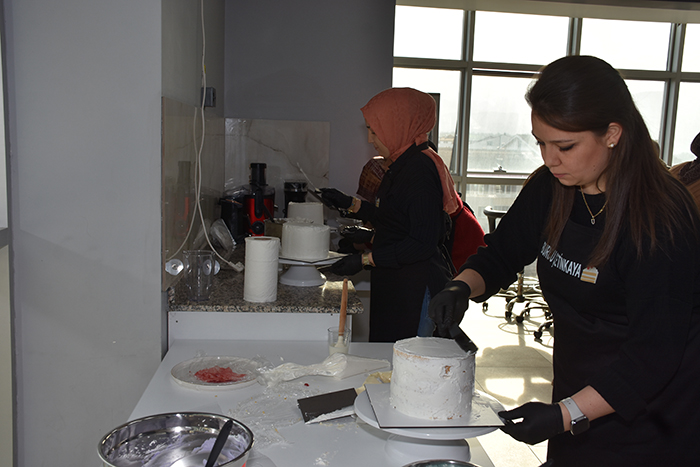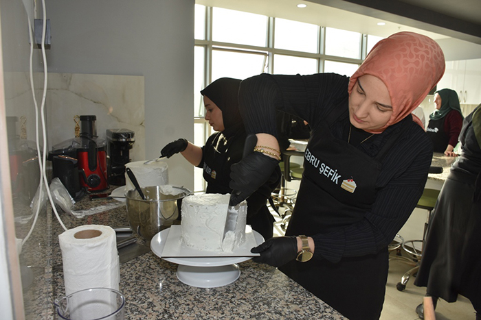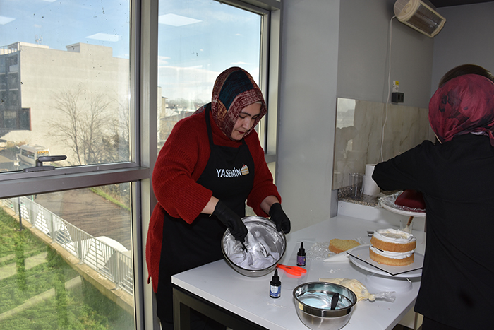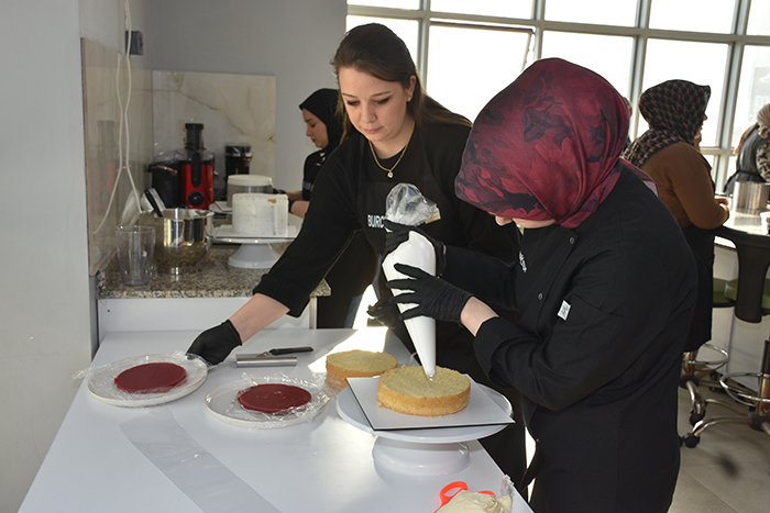 Hâlihazırda evlerinde butik pasta yaparak aile ekonomisine katkı sağlayan arkadaşlarımız da mevcut ifadelerine yer verirken, Aşçılık koordinatörü Zübeyda Öner, şu an 16 öğrencimiz var.