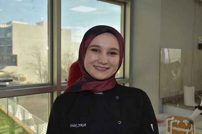 Kurs Pasta koordinatörü Sedanur Okumuş, şu anda 11 aktif pastacılık öğrencimiz var. Belgelerini aldıklarında bazıları iş hayatına atılacak, bazıları kendi pastanelerini bile açabilecek.