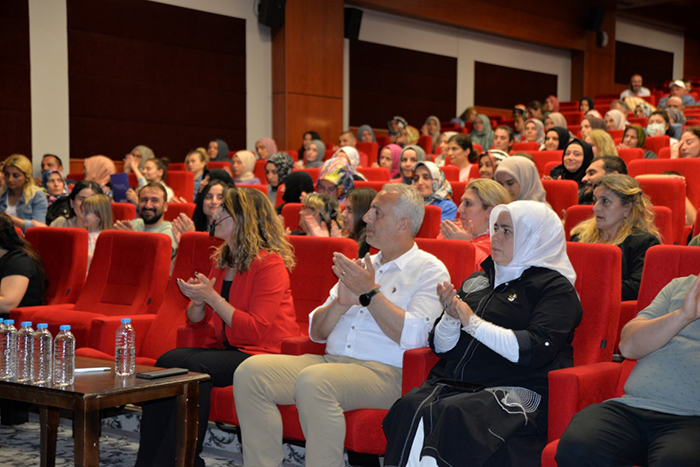 Ardından velilerimizi sınava tabi tutup dereceye giren velilerimize bugün nasipse ödüllerini takdim edeceğiz. Velilerimize ve ailelere kıymetli bilgileriyle ışık olan Dilek Cesur hanımefendiye, bizlerden her fırsatta desteğini esirgemeyen Başkanımız Sn. Turgut Babaoğlu’na ve Projemize destek veren herkese teşekkür ediyorum.” dedi.